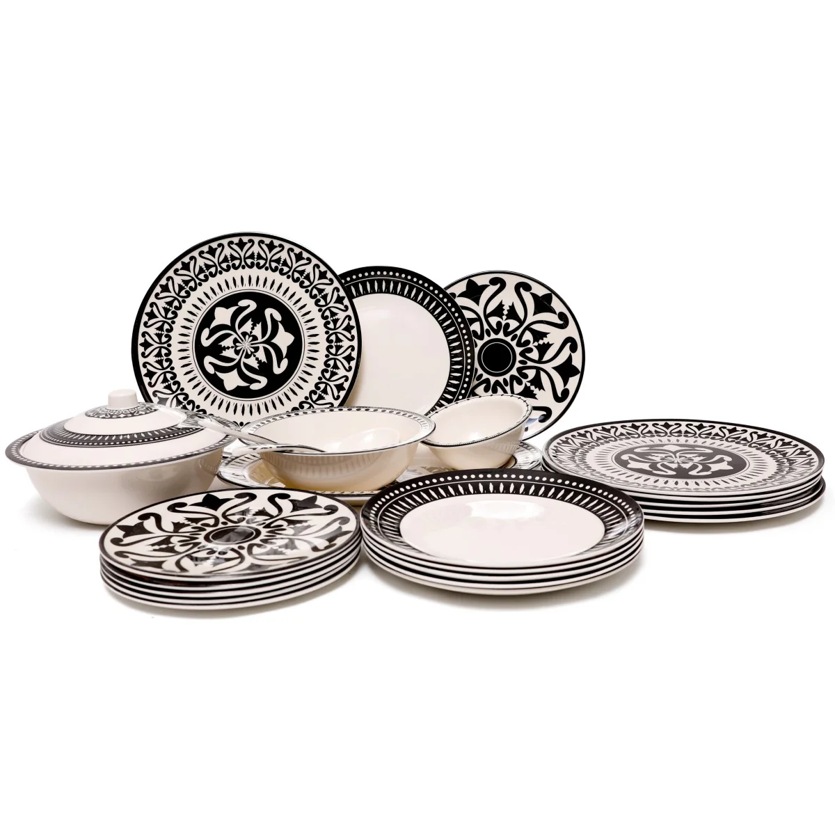 Looking for stylish and durable dinnerware? This melamine dinner set is made from high-quality, break-resistant, and BPA-free material, designed to withstand everyday use. Plus, its luxurious design will add a touch of elegance to any table setting, whether indoors or outdoors. Its versatile design makes it perfect for both casual meals and formal events, while its easy-to-clean surface ensures it will be a staple in your collection.